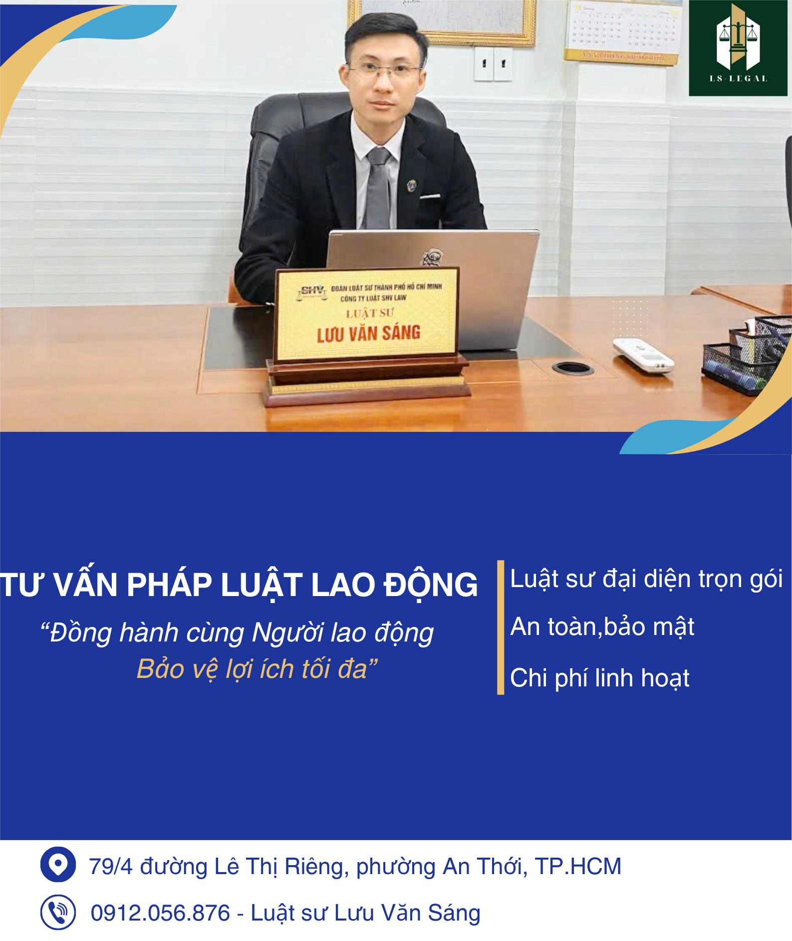 Điện thoại: 0912.056.876 (Luật sư Lưu Văn Sáng) – 0964.816.140 (Chuyên viên Nguyễn Thị Ái Ly)